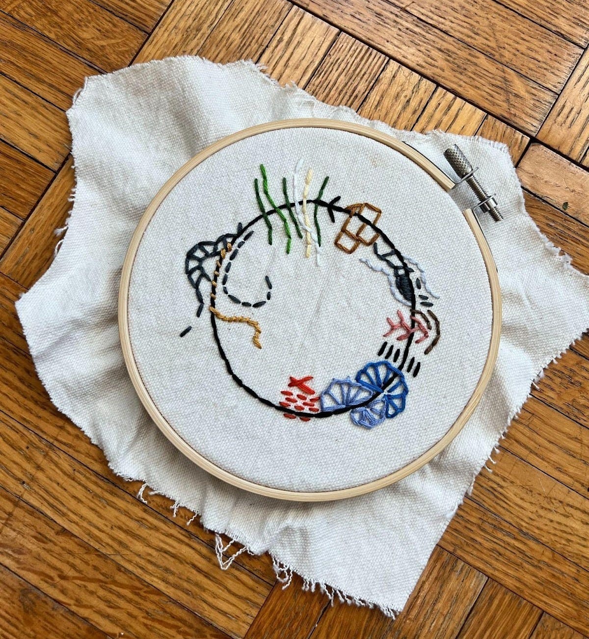 I took up embroidery (and started writing about it) a couple years ago, when my husband and I lived in different states for months at a time because of his work in Texas and my return to grad school in NYC. When he had our daughter with him the separation was painful, but when I had her with me it was hard in a different way. For her too, in ways she was perhaps too young to fully articulate.
